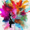 Inspired by B II channels the emotional spirit of Banksy’s Girl with Balloon while infusing it with bold, electric energy. The familiar silhouette of a young girl reaching for a heart-shaped balloon is set against an explosion of vivid colour, pink, green, yellow, blue, and orange, transforming the original’s quiet sentiment into a powerful statement of hope and resilience.
