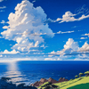 Life to Art transforms one of Lee’s original photographs into a luminous digital masterpiece inspired by the sweeping views of Arthurs Seat overlooking Port Phillip Bay. Billowing clouds drift across a vivid blue sky, while rolling green hills and sculpted cliffs flow gently toward tranquil waters, capturing the quiet grandeur of nature in motion.