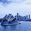 A bold reimagining of Australia’s most iconic skyline, Sydney II transforms Lee’s original photograph taken on Sydney Harbour into a striking study in architectural grace and urban rhythm. Rendered in deep, monochromatic blues, the composition spotlights the Sydney Opera House’s sculptural curves set against a textured cityscape—where light and shadow converge across towering buildings and reflective waters.