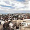 From the tower in St. Mark’s Square, Lee captures Venice in radiant detail. The domes and rooftops of St. Mark’s Basilica unfold into a sunlit tapestry of warm ochres, terracottas, and shimmering blues, with the lagoon glistening beyond. A timeless celebration of Venice’s elegance, history, and romance.